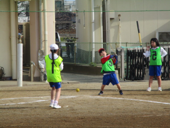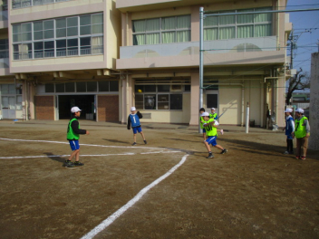 ひと通り、3年生の体育の学習が終了したあるクラスでは、リクエスト学習として「ラケットベースボール」の復習を行うことになったようです。学習済みの単元ですので、子供たちも生き生きとゲームを楽しんでいました。ワンバウンドで投げられたボールをラケットで遠くに飛ばすのは難しそうでしたが、全員で選手の動きを見ながらゲームを進めていました。
