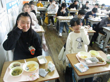 •  3月3日は、「ひなまつり」の日です。季節の節目に伝統的な年中行事を行う五節句のうちのひとつで、この時季は桃の花が咲く季節でもあることから桃の節句として親しまれ、女の子の健やかな成長を願う日本の伝統行事が行われます。給食も、「ひなまつり」の行事食献立でした。