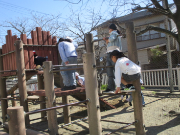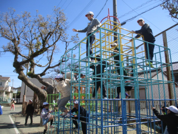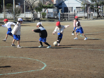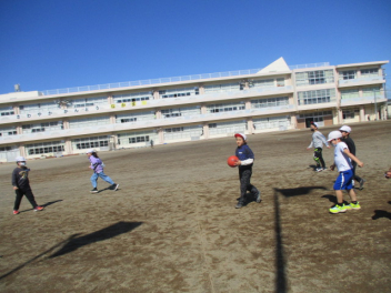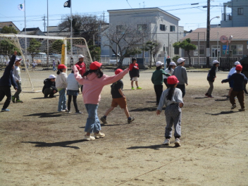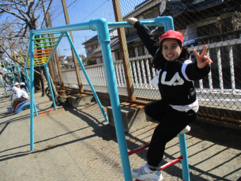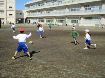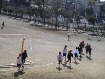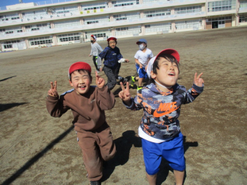 • 運動場で元気よく