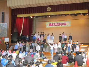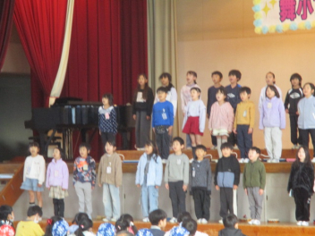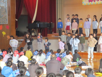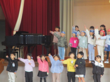 1年生は、リレーイベントや秋をつかったおもちゃづくりを頑張ったことを発表しました。冬休みには、なわとびやお手伝いを頑張るようです。冬休みにしかできないこと頑張ってほしいです。