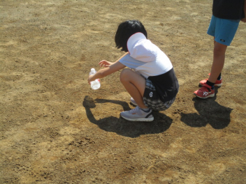 どうやら、砂の方がはやくしみこむようです。土もゆっくりではありますがしみこんでいきます。ふった雨は、運動場にしみこんでもいくことが分かりました。