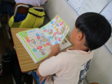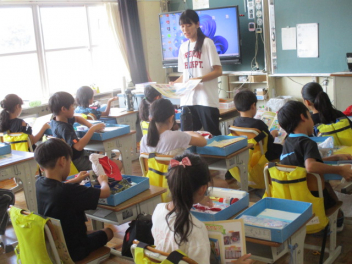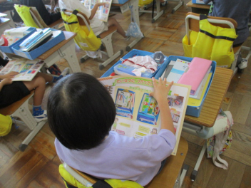 自分の道具箱の中をイラストと見比べながら、自分はどちらにあてはまるか確認している学級もありました。多くの子がきちんと整頓されていましたが、苦手な子もいるようです。お手本のイラストを参考に、使ったものを元あった場所にもどす習慣を身につけることができるといいですね。