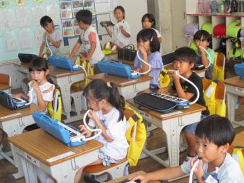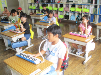 2学期最初の音楽では、鍵盤ハーモニカに慣れ親しむ活動をしているようです。