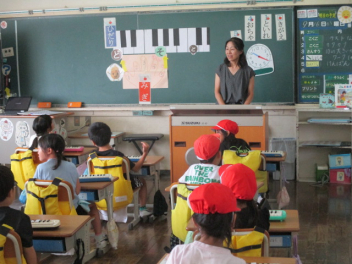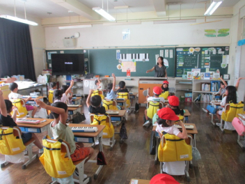 •  1年生の教室からは元気な歌声と鍵盤ハーモニカの音が聞こえてきます。