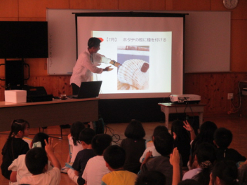 ホタテの貝殻に種となるものをうえることから始まることを初めて知った子も多かったと思います。
