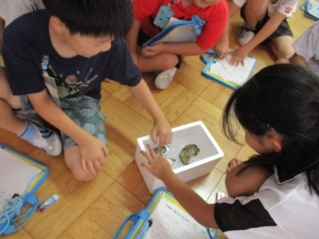 「ぷにぷにしてる。」 「意外とかたい。」などうれしそうにしている姿から本物に触れることの大切さを改めて感じます。