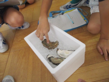 現在養殖中の成長途中の牡蠣も実際に見たり、触ったりさせていただきました。