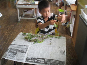 種まきから、リースづくりまで、アサガオを通して楽しい体験をたくさんすることができました。花の会の皆さま本当にありがとうございました。(文責;教頭)