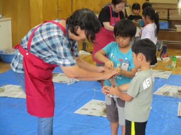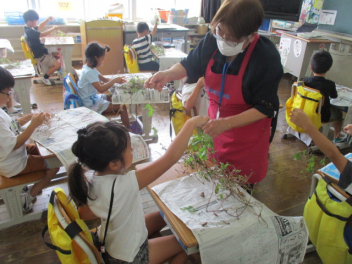 花の会の方に教えていただき、こつをつかんだ子は、困っている子に優しく教えることができていました。
