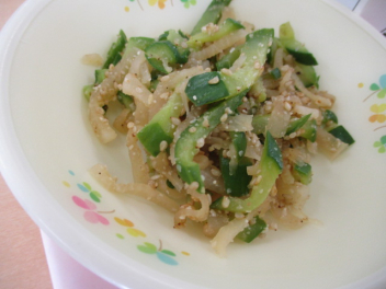 大根のサラダには、「たくあん」も入っていて、きゅうりと大根、たくあんの様々な歯ごたえを楽しむことができました。