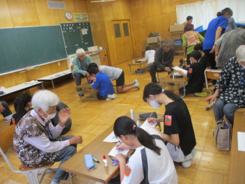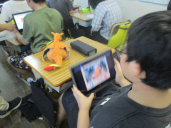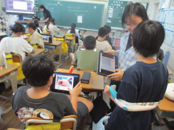朝食の摂取状況やいくつの種類のグループの食品を食べているかなどについてタブレットを用いて確認しました。