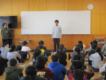 修学旅行を前日にひかえた6年生。本日の5時間目に会議室にて出発式を行いました。