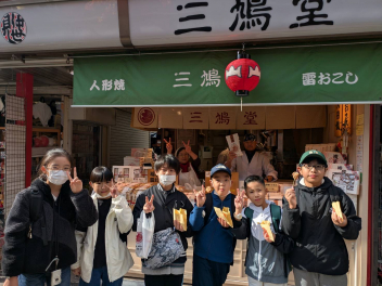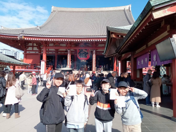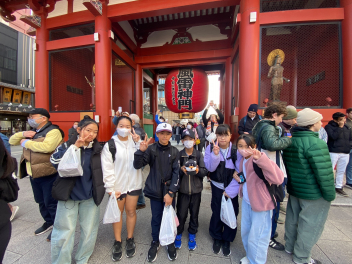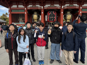 また、スカイツリーや風雷神門をバックに仲良く記念撮影も行いました。たくさんいる外国の方に話しかけた子はいたのかな。(文責;教頭)