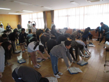 「プニプニしていて楽しい。」「しいたけの香りがすごいする。」と言いながら、しいたけを収穫していきました。
