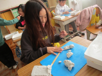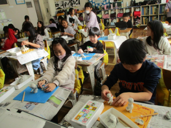 「2年生のおもいでを ねんどであらわそう」をめあてに、子供たちは一生懸命活動に取り組んでいました。