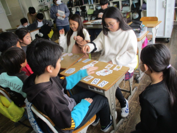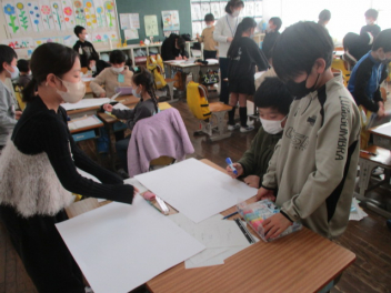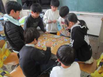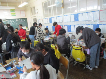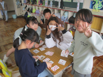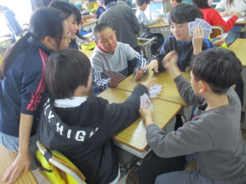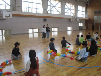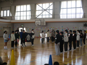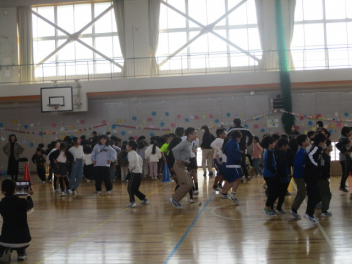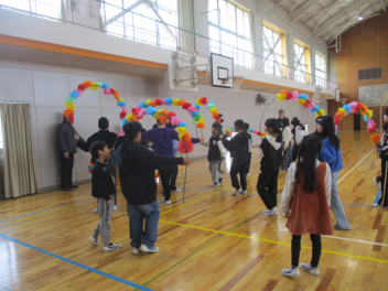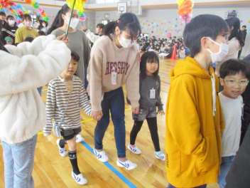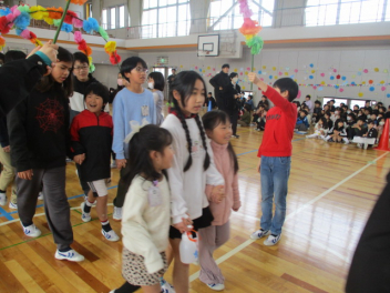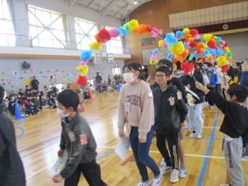 6年生と一緒に遊ぶと決めたのは、2年生。最後にボー送りリレーで一緒に遊びました。人数の関係なのか練習の成果か、2年生が圧勝しました。それでも、一緒に楽しめて6年生は笑顔いっぱい。同じ時間を過ごすことで感謝の気持ちも伝わったと思います。
