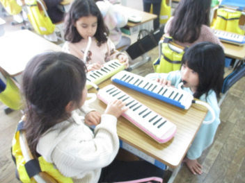 「きらきら星」の合奏と似顔絵入りのメッセージカードで気持ちを伝えたのが一番お世話になった1年生。カードを受け取った6年生たちはとても幸せそうな顔をしていました。1年生の思い、しっかり伝わったと思います。