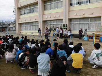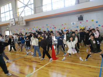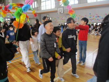 4年生は、踊りで会を盛りあげます。誰でも踊れるチェッコリダンスを披露し、その後、6年生や全校児童で踊りました。踊るのが大好きな舞阪っ子、みんなのりのりでした。楽しく感謝の気持ちを伝えていました。