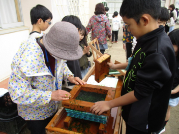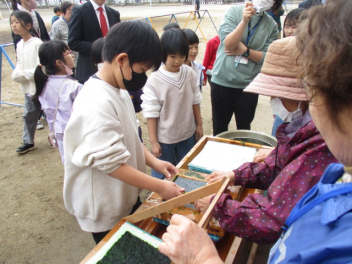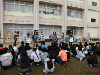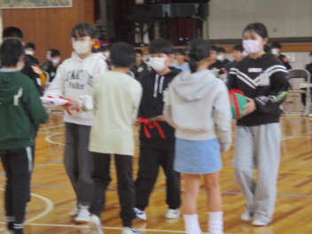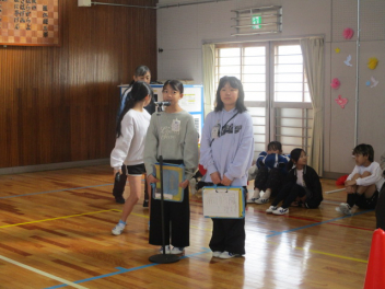 会の最後には、委員会の引継ぎ式が行われました。本年度の委員長から5年生の代表児童に委員会を象徴するものが手渡されました。舞阪小学校の伝統のバトン、本日確かに引き継がれました。