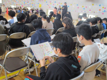 5678組の子たちは、サイコロトークを企画し、6年生に6年間を振り返ってもらいました。「好きな場所」や「中学で頑張りたいこと」など発表してくれました。最後の代表の子が「下級生に一言」の目を出した時には、サイコロの神様がいるのかと思いました。一緒に楽しみながら感謝を伝えることができました。