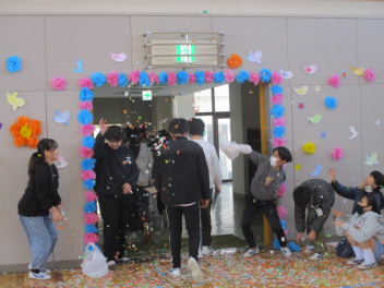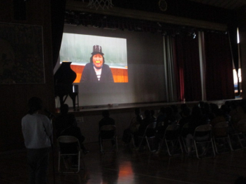 5年生からの贈り物は、思い出のアルバムでした。導入から凝ったつくりで、新しいAIアプリを活用したのかと思えるほどでした。6年間の思い出や以前の担任の先生からのメッセージに、楽しそうな笑い声を聞くことができました。