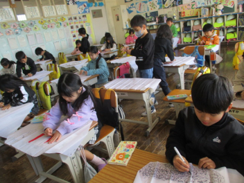 6年生と一緒に遊ぶと決めたのは、2年生。最後にボー送りリレーで一緒に遊びました。人数の関係なのか練習の成果か、2年生が圧勝しました。それでも、一緒に楽しめて6年生は笑顔いっぱい。同じ時間を過ごすことで感謝の気持ちも伝わったと思います。