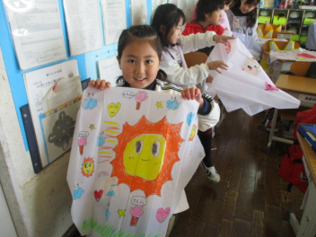 「きらきら星」の合奏と似顔絵入りのメッセージカードで気持ちを伝えたのが一番お世話になった1年生。カードを受け取った6年生たちはとても幸せそうな顔をしていました。1年生の思い、しっかり伝わったと思います。