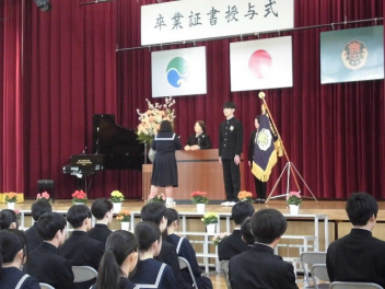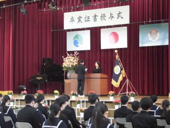 卒業証書授与では、校長先生から一人ひとりに卒業証書が手渡されました。