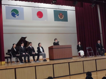 そのあとの校長式辞では、今年の頑張りを次の学年へとつなげてほしいとのお話がありました。