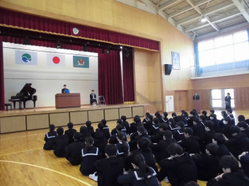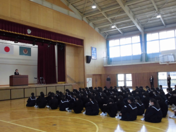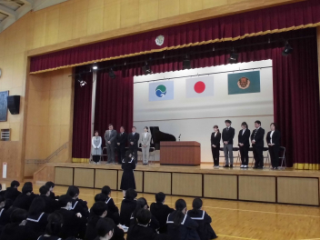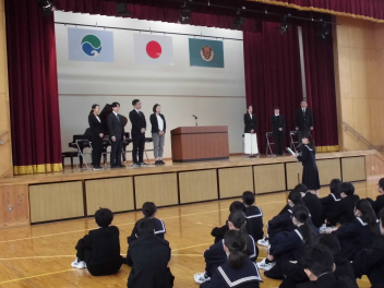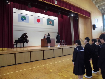 修了式では、代表生徒が3学期を振り返ったうえで、来年度の抱負が語られました。