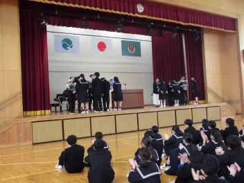 その後、学年合唱が披露され、感動のうちに式が終わりました。