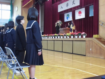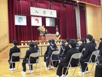 2・3年生が贈る拍手の中を、新入生が緊張した表情で入ってきました。