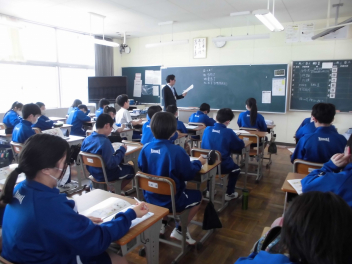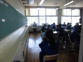 年度の始まりにあたり、各教科担当の先生について、担任が発表しました。