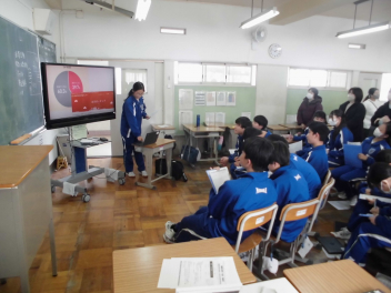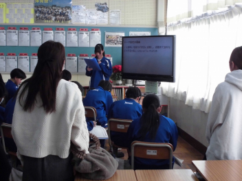 生徒が発表する様子を、多くの保護者の方に参観していただきました。