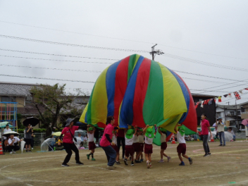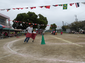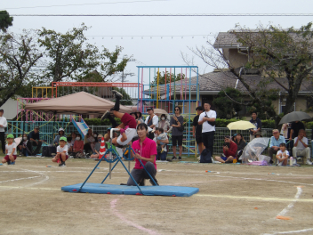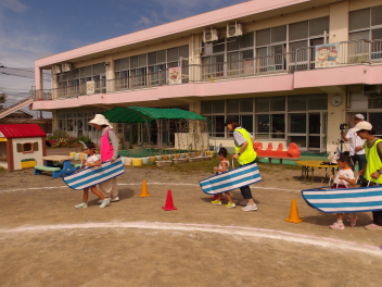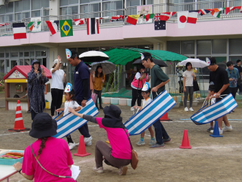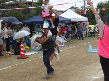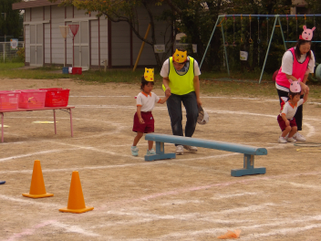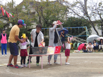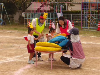 PTAのお手伝いの方に協力していただき、親子競技を一緒に行ったり、競技の用具の出し入れを手伝ってくれたりしましたlaugh