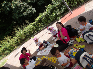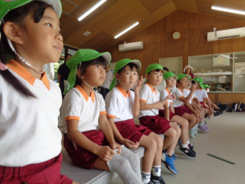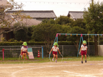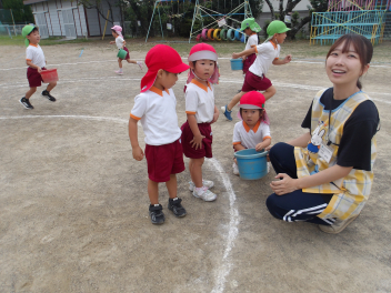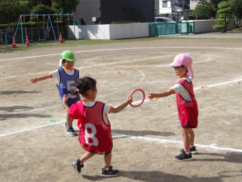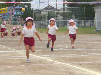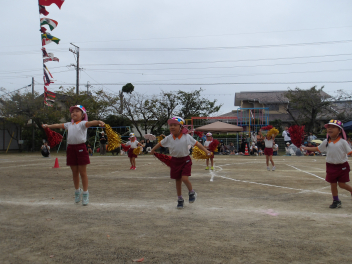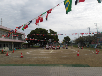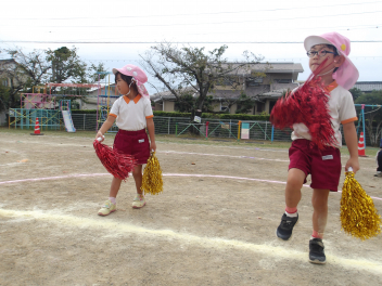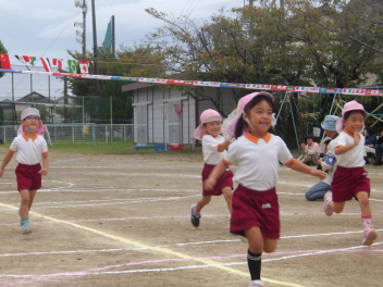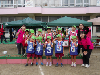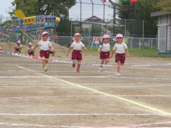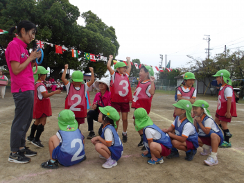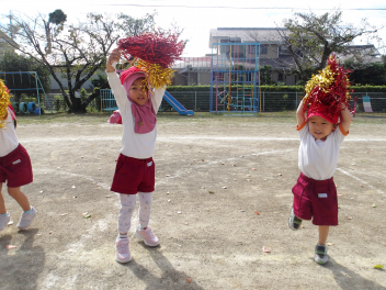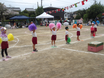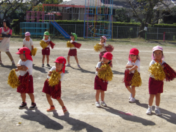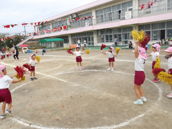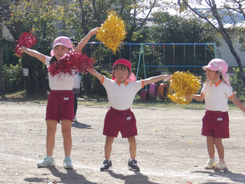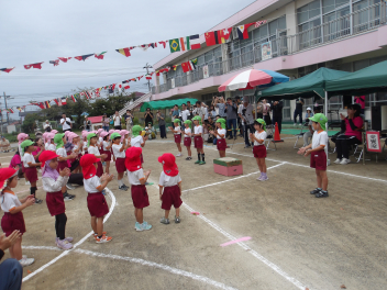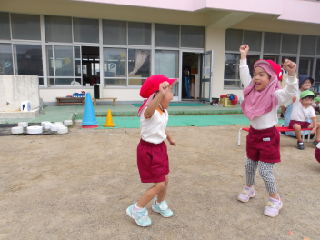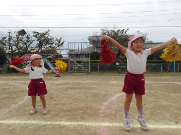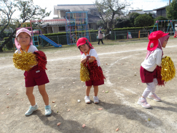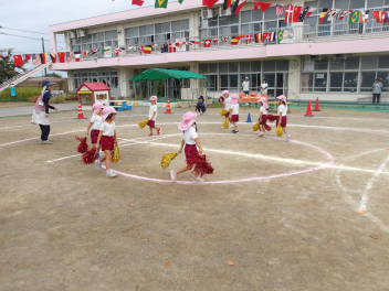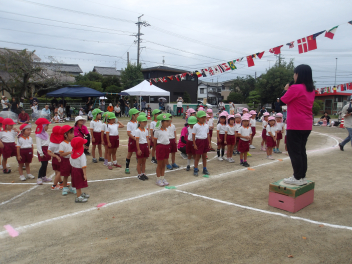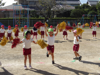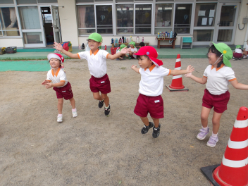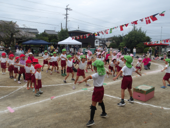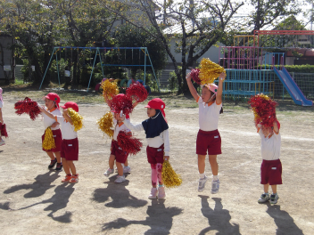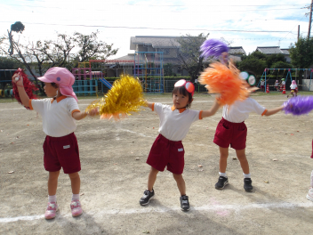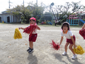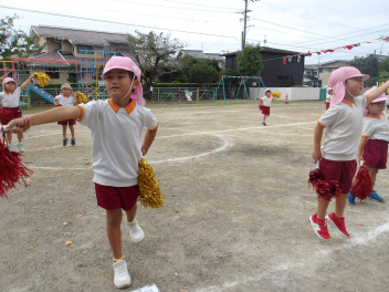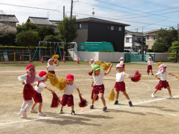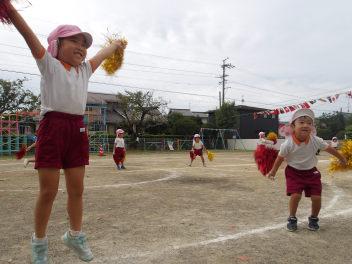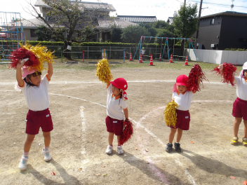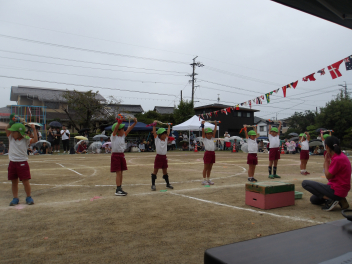 運動会ではちょっぴり緊張していた年少さんも、年中さんの踊りを元気よく踊ったり、自分たちの踊りを「ここはこうやるんだよ」と他の学年の子に教えて楽しんでいましたよsad