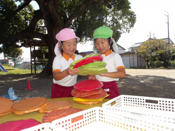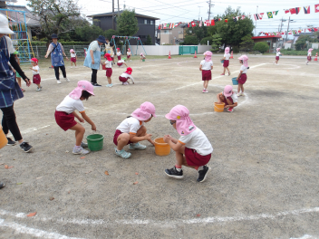 運動会は終わりましたが、幼稚園では運動会ごっこが盛り上がっています