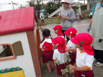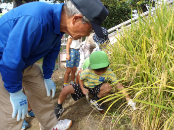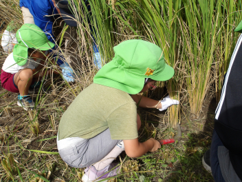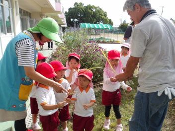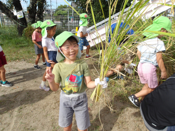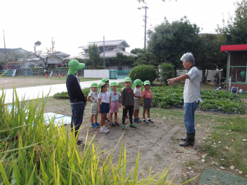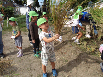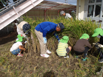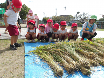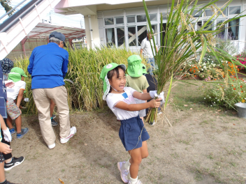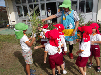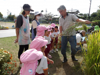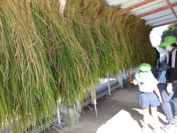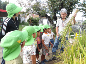 年長さんも年少・年中さんに稲を見せてくれましたよ。