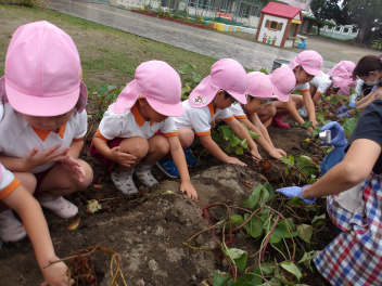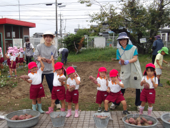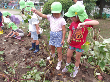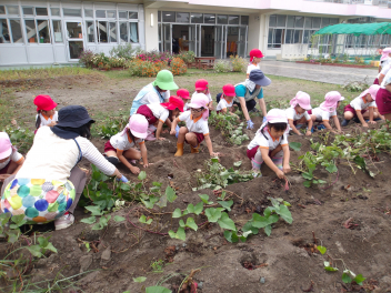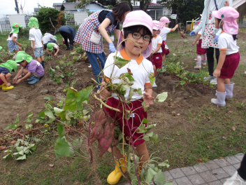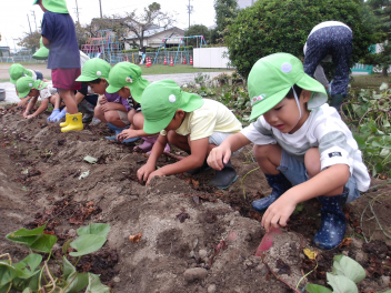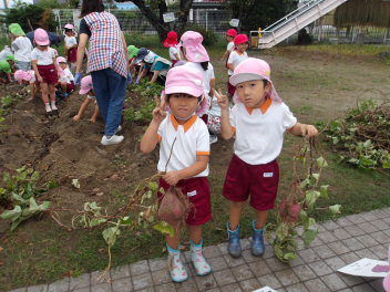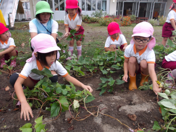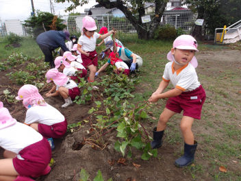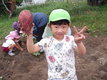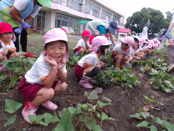 どんなサツマイモが掘れるかな。楽しみ~cheeky