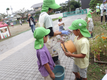 子供たちも園庭の石拾いをして運動会の準備をしました