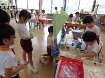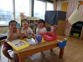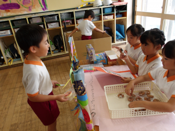明日の遠足のために、年長さんのお菓子屋さんを開いてくれました