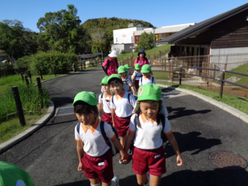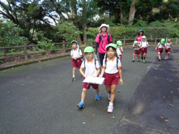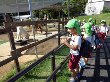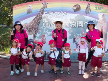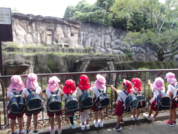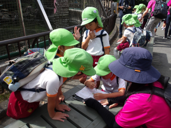 動物園では、年少・年中さんでペアになり、探検カードで動物を探しながら、いろいろな動物をじっくり観察したり、自分の思いを友達や先生にお話ししたりしていましたsad年長さんは3・4人のグループでミッションクリアを目指して友達と協力しながら進んでいきました