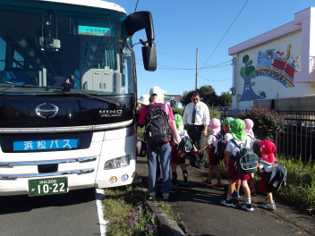 バスに乗って、みんなでしゅっぱ~つみんなウキウキで、友達や先生とバスの中では歌ったり、クイズをしたり大盛りあがりでしたsmiley