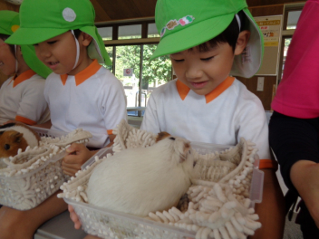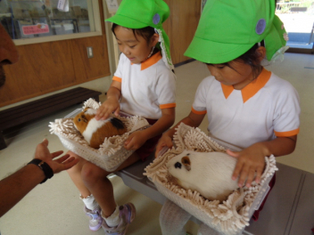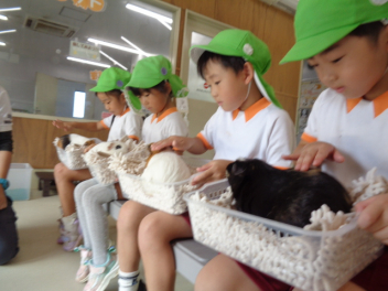 年長さんはモルモットの触れ合いの体験をしましたlaugh「フワフワしてて気持ちいいね」「かわいいcheeky」など優しく関わっていました