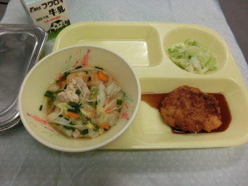 今日はカツにウスターソースやざらめを使った手作りのソースをかけました。甘めの味付けでご飯が進みましたね