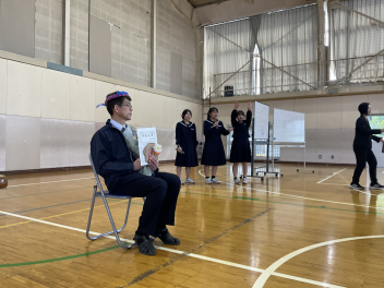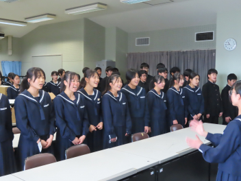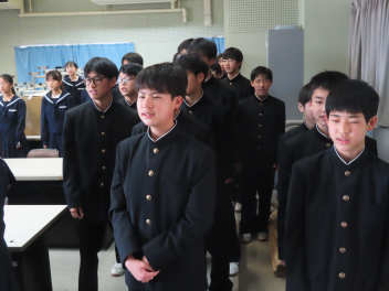 校長先生から昨日の卒業式の感想を聞かれた2年生。