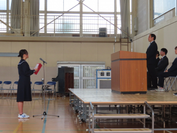1年生の代表生徒は、「クラスや学年の課題をみんなで対話しながら解決していくことができた。2年生では、3年生を支え、1年生を導く存在になり、学校全体に調和が生まれるようにしたい。」と述べました。
