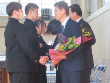 保護者の皆さん、これまで本校の活動に御理解と御協力をいただきありがとうございましたlaugh卒業生のそれぞれの進路での活躍を願っています参列いただいた地域の皆さん、ありがとうございました。