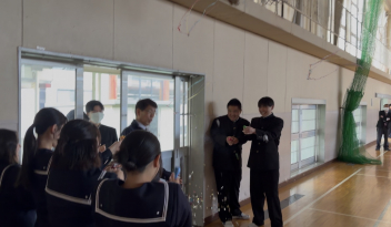 離任式が終わり、いつも通り職員室へ戻ったあと、「教室整備に行ってきます」と伝え、教員は体育館へ集合。そこから生徒が「忘れ物をしたので…」という形で主任の先生を呼び出し、体育館へ案内しました。 体育館の扉を開けた瞬間、先生の目の前に広がっていたのは、離任式に来てくれていた3年生全員の姿。 まさかの光景に、先生も驚きの表情でした。