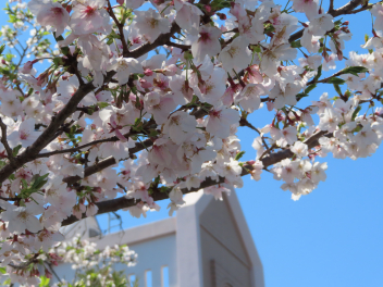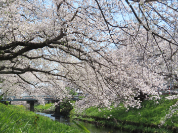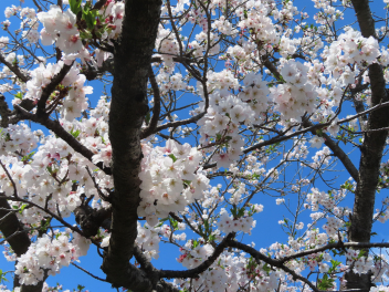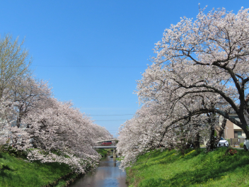 • 新年度3日目です。今日はとても暖かく、学校周辺の芳川堤防の桜の花が一気に満開になってきました